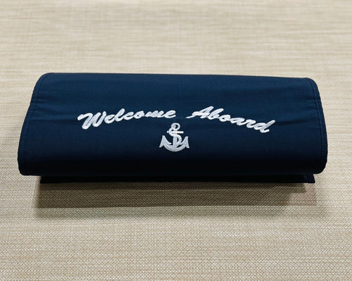 Custom 20"W X 36"L "Welcome Abroad" SUNBRELLA Canvas Gunwale Boarding Mat